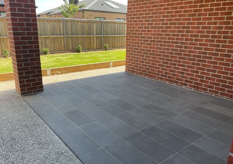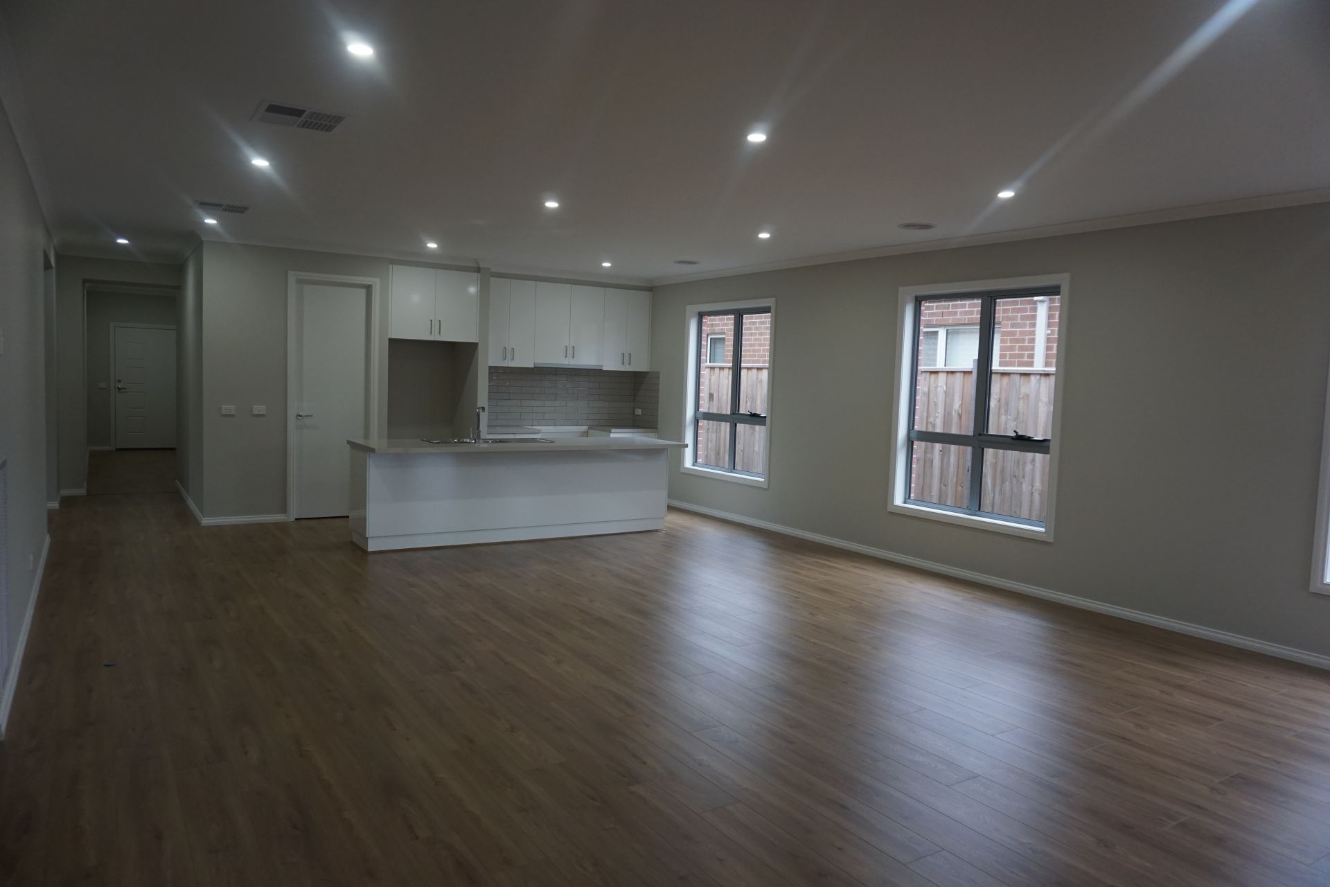 The living area flows outdoors onto the low maintenance yard.