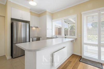 The bright open-plan meals/living area is adjacent to the kitchen, which features quality appliances, ample cupboard space, and a large bench.
