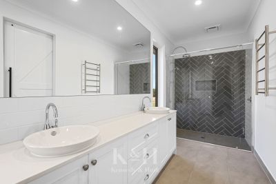 A sophisticated main bedroom suite is nestled privately at the end of the home, offering a tranquil retreat with a deluxe walk-in robe and spacious ensuite.
