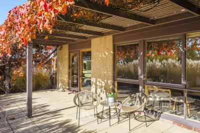 Passive solar design principles were key to the development of this home, with the orientation ensuring that the north-facing living spaces are flooded with winter sunlight; while the stunning Crimson Glory vine provides shade from the sun in summer.