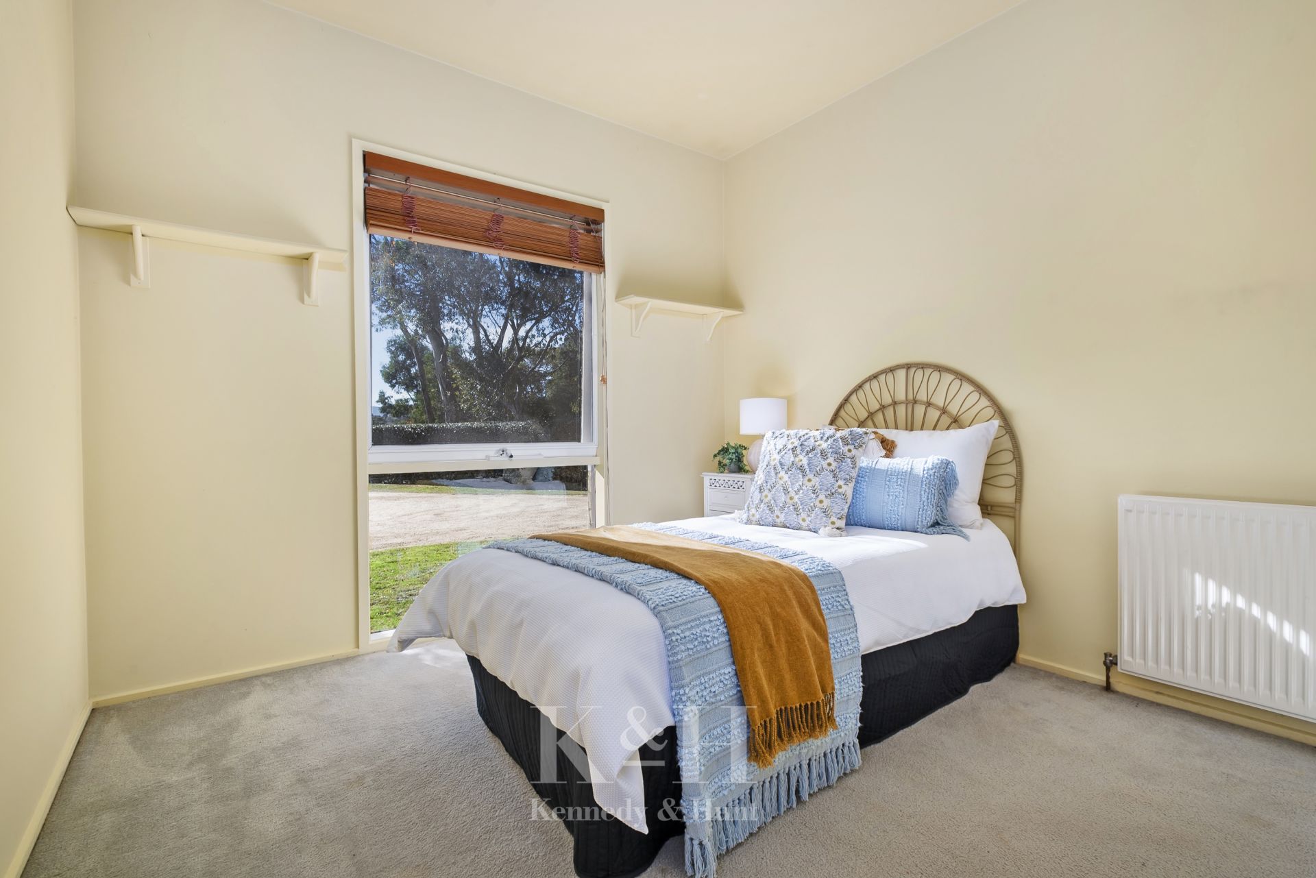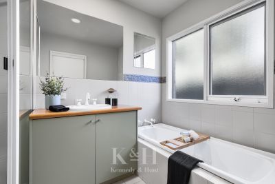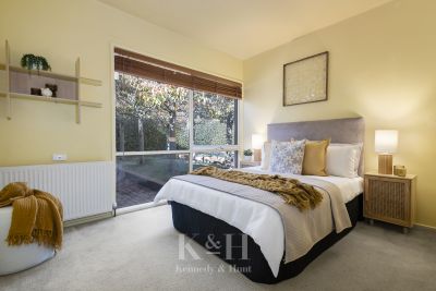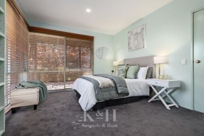Within this charming residence, you will discover a privately located, generously proportioned main bedroom, with built-in robes and a full ensuite bathroom. Corner windows provide delightful views of the stunning basalt rock water feature and garden, adding to the serenity of the space.