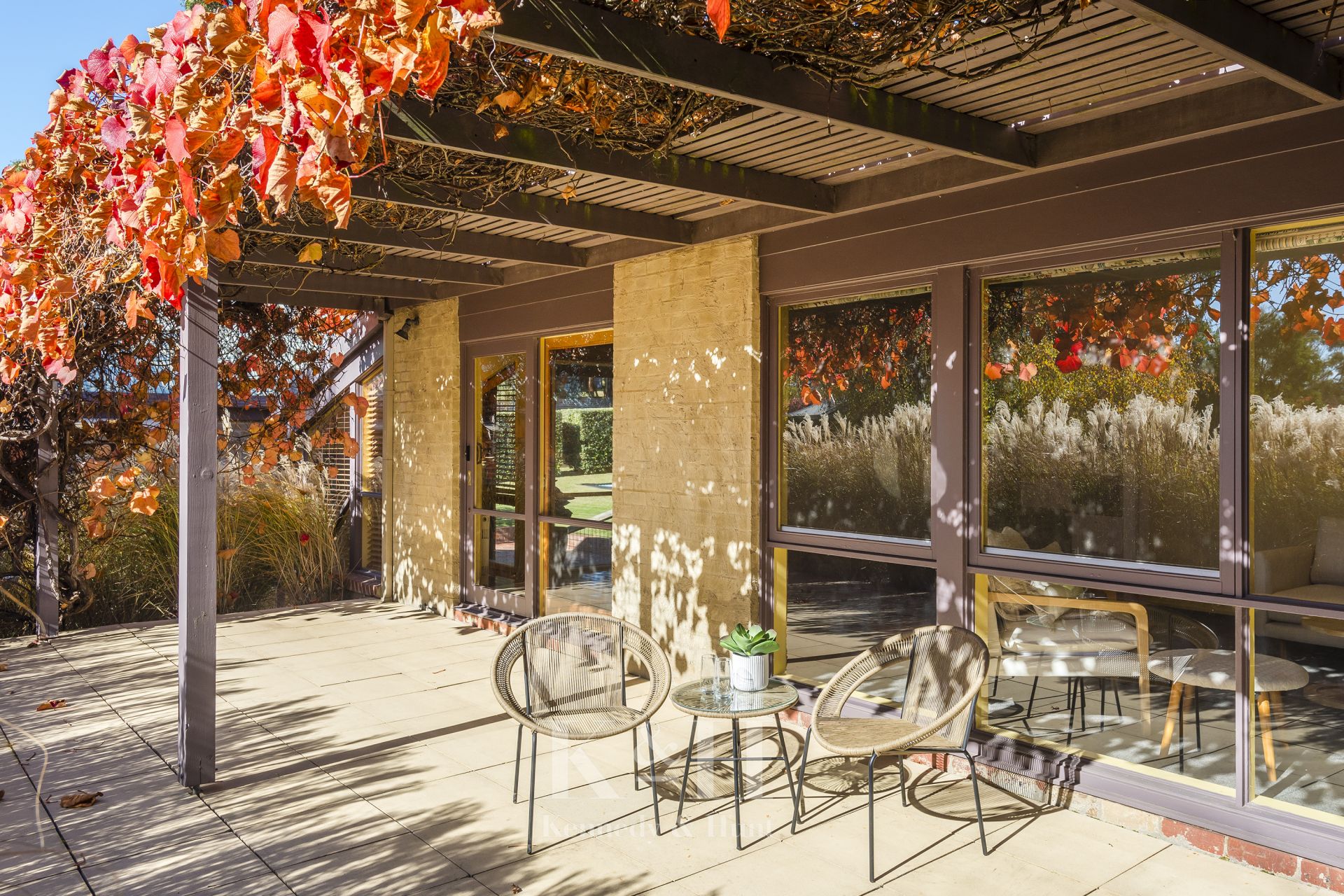 As you enter the front gate, the sense of seclusion and tranquility is immediate, with the established Eleagnus hedges framing the property, and creating a personal sanctuary. Lovingly created in 2000 by a renowned garden designer, the low-maintenance "winter garden" features bursts of colours, while structure is created by mass plantings of perennial grasses and plants. A stunning Pin Oak stands proudly at the base of stone steps, leading to the elevated front terrace with views towards the equally picturesque Mount Macedon.