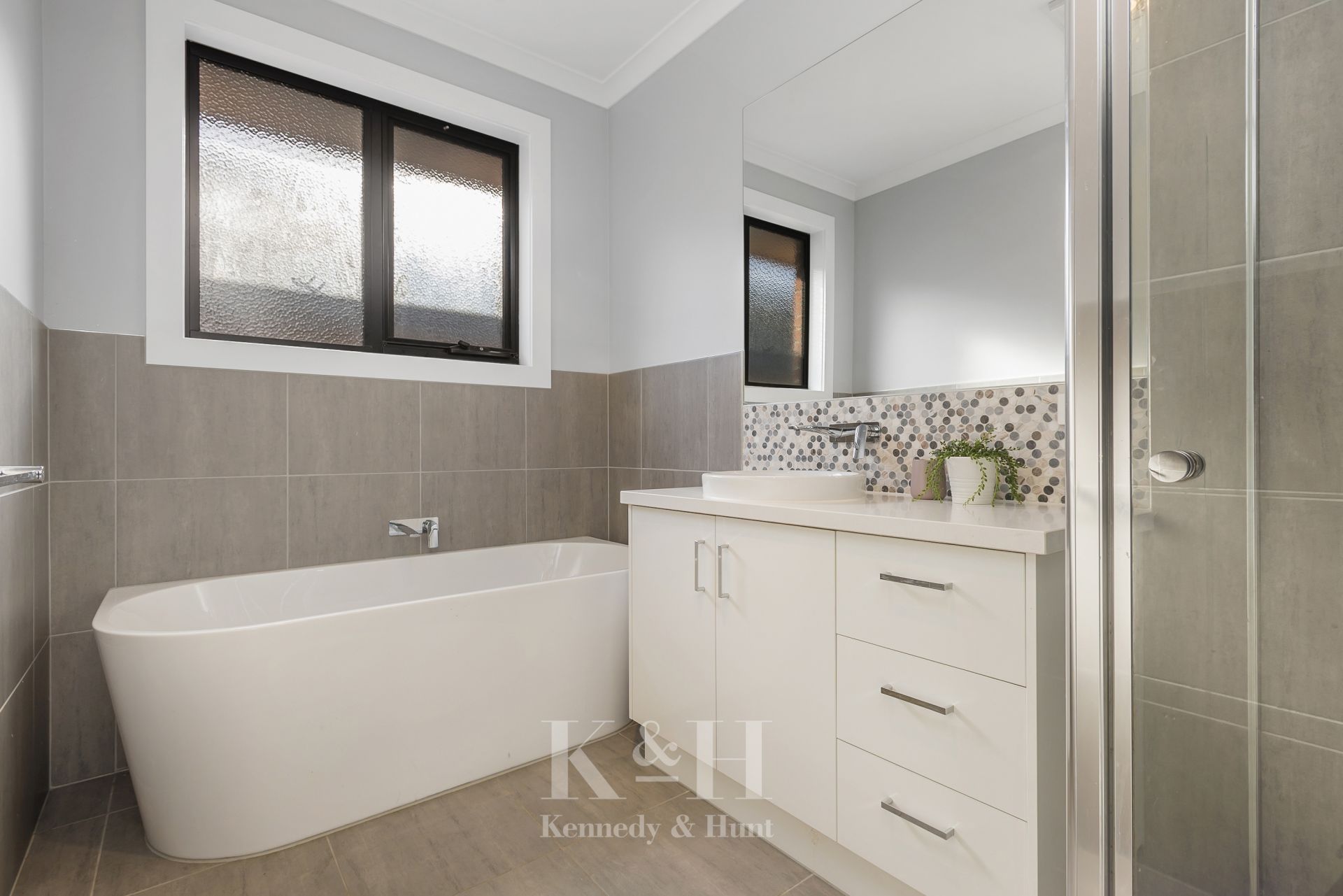 - Concrete driveway and paths to the front and rear of the property