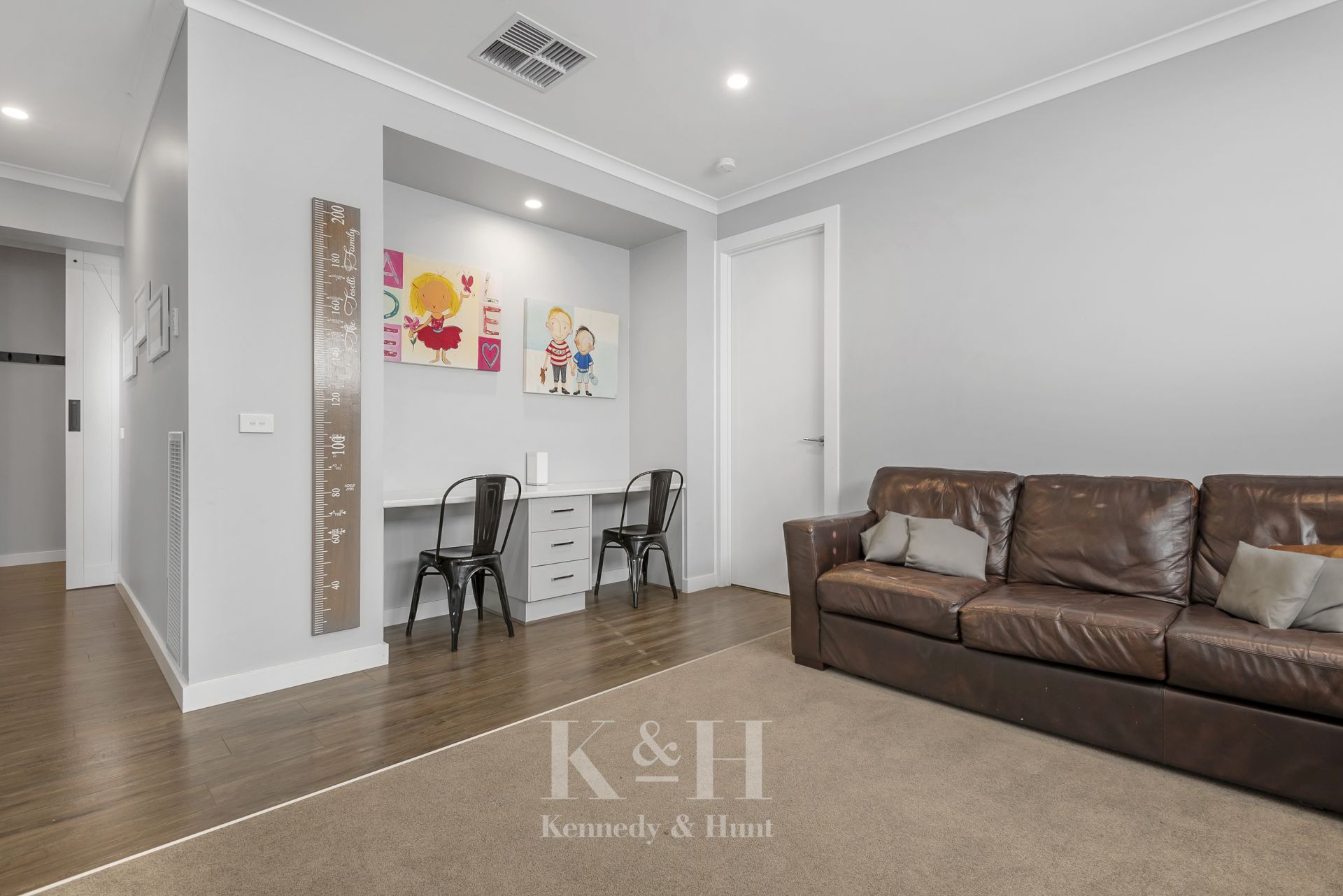 From the well proportioned hallway, a stylish barn door leads you to a separate bedroom wing incorporating 3 bedrooms, each with BIR's, a large family bathroom, and a separate powder room. A second living area with a dedicated study area allows the entire family to have their own space.