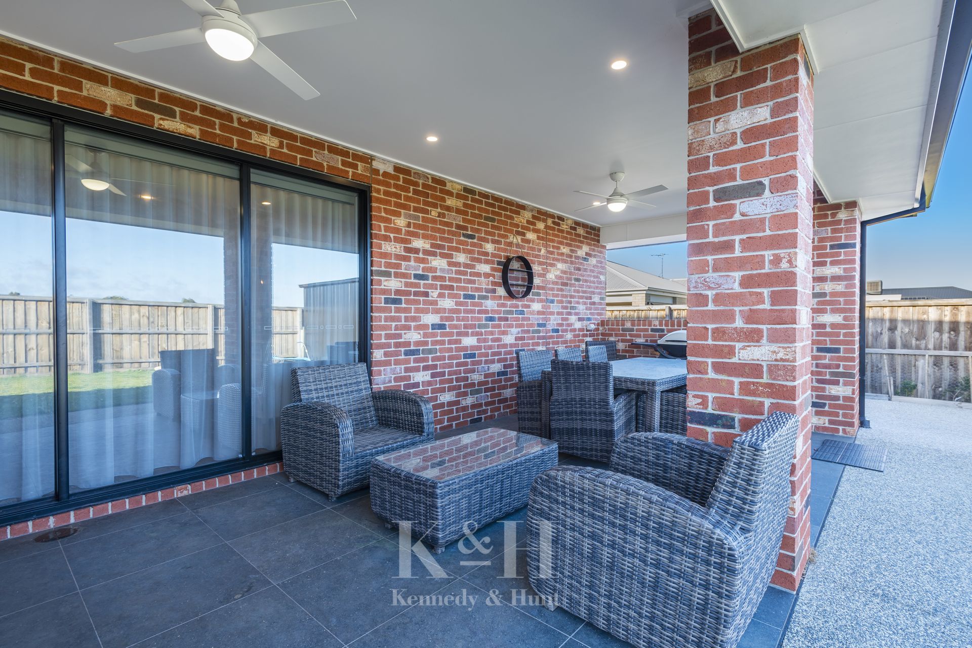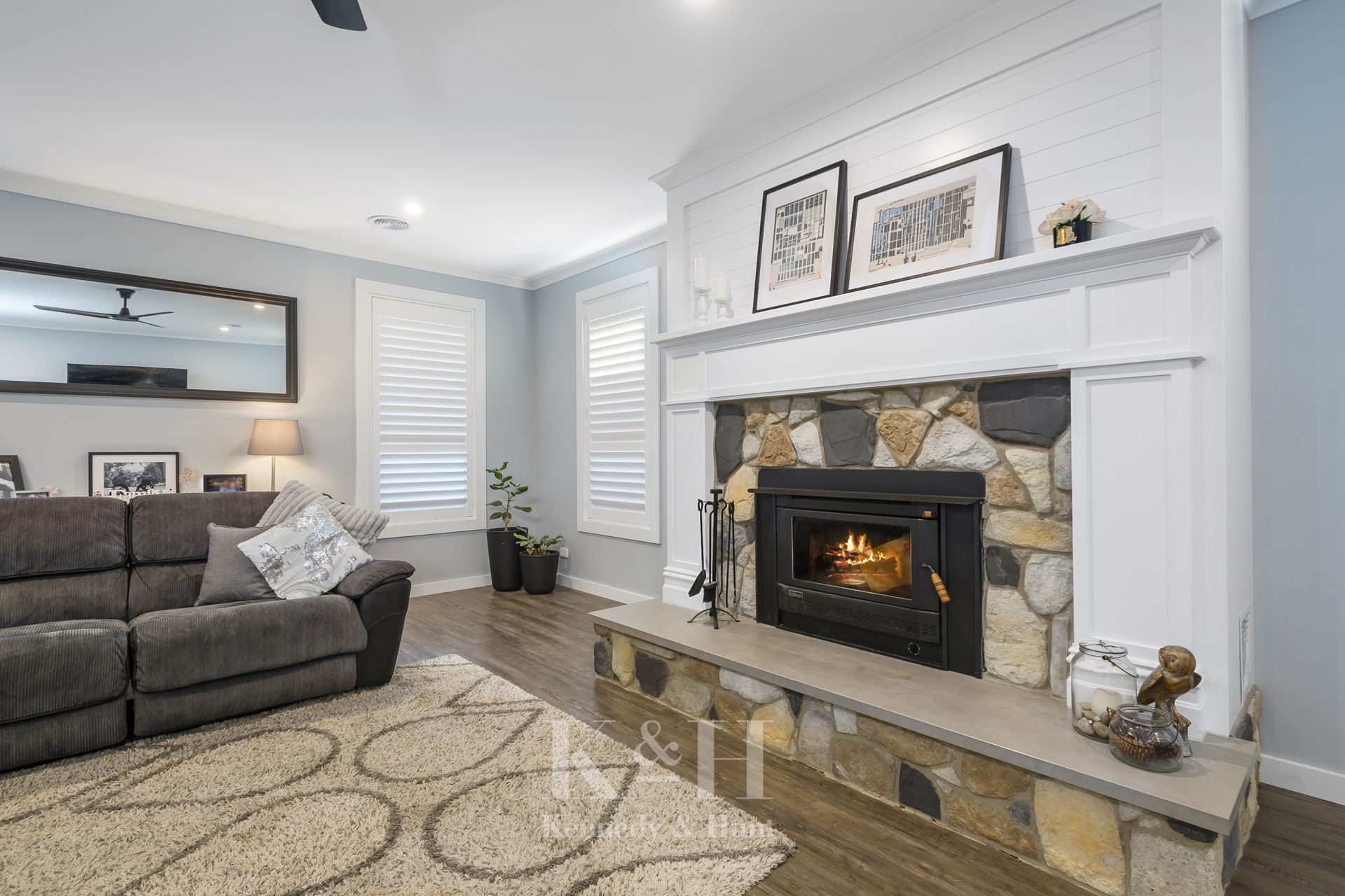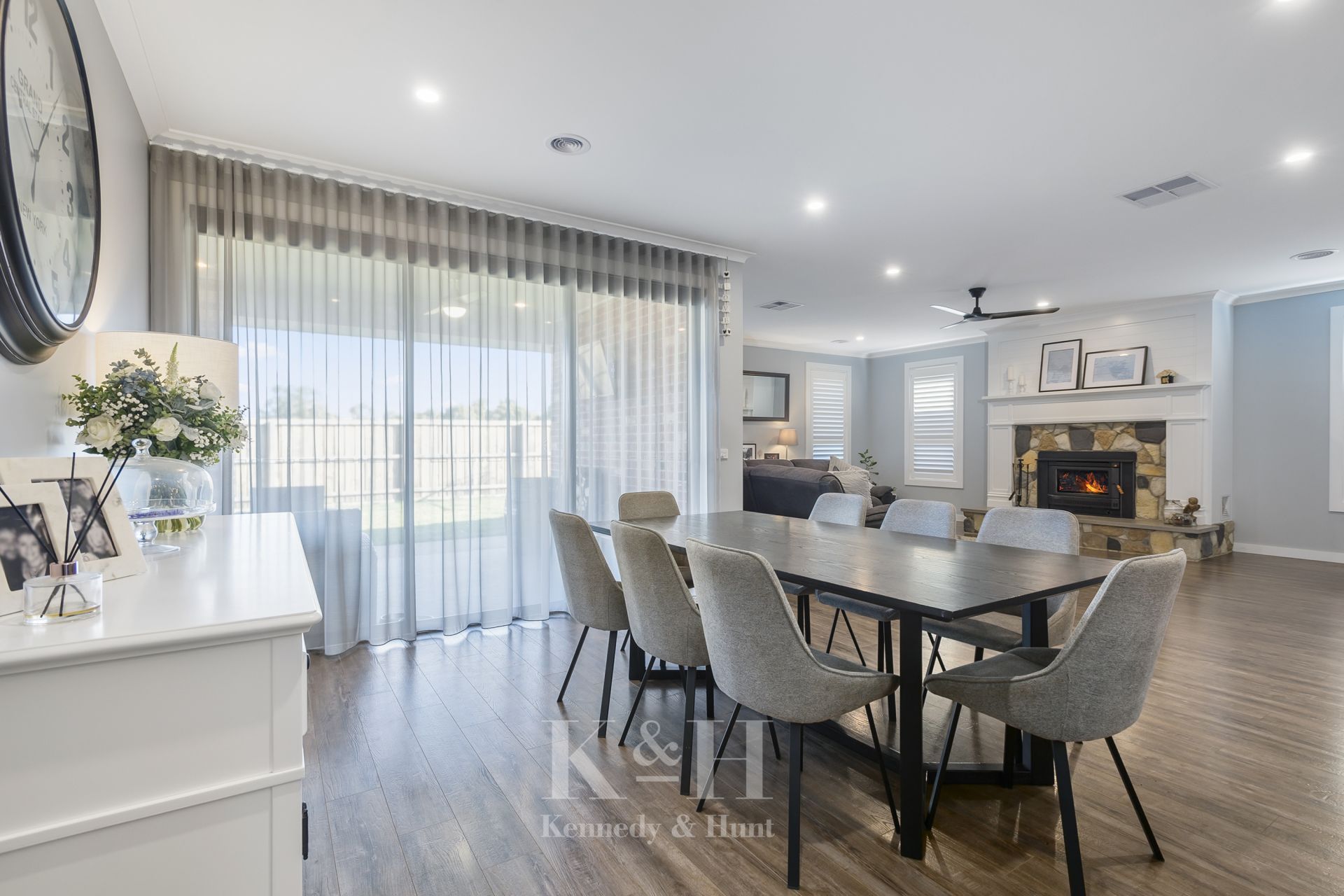 The immaculate central kitchen integrates seamlessly with the dining area that flows out onto the undercover alfresco area through stacker doors, perfect for entertaining. The adjacent family room includes a cosy wood fire and ceiling fan ensuring year-round comfort.
