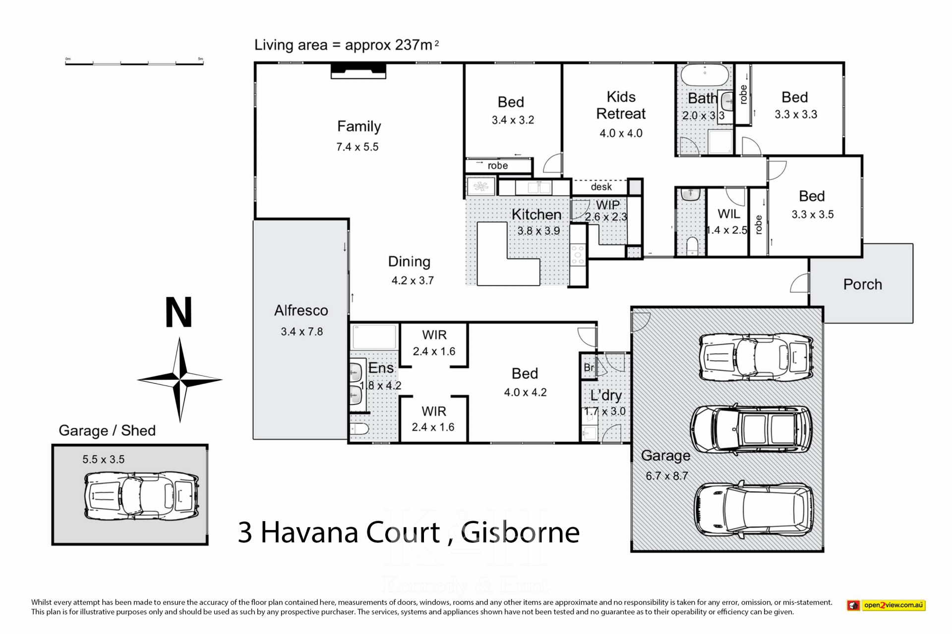 - Additional shed (5.5m x 3.5m approx.)