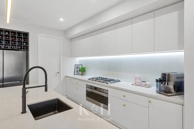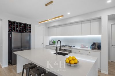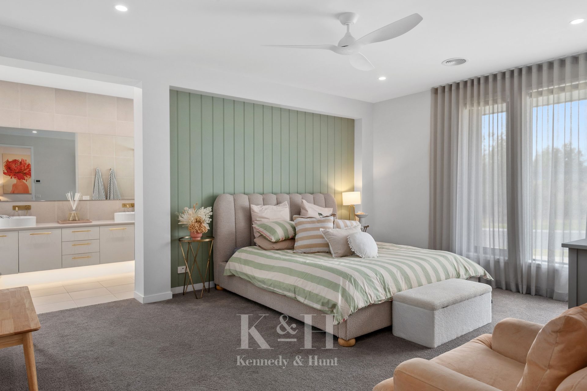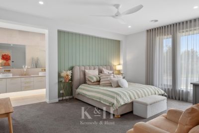 The modern kitchen is a showstopper, complete with stone benchtops, a spacious butler's pantry with LED lighting, and top-of-the-line stainless steel appliances. This culinary space combines style and substance, offering plenty of room to create, cook, and entertain. Overlooking the open-plan dining and living zones, and flowing directly to a covered alfresco area, this space is ideal for hosting family and friends in comfort and style.