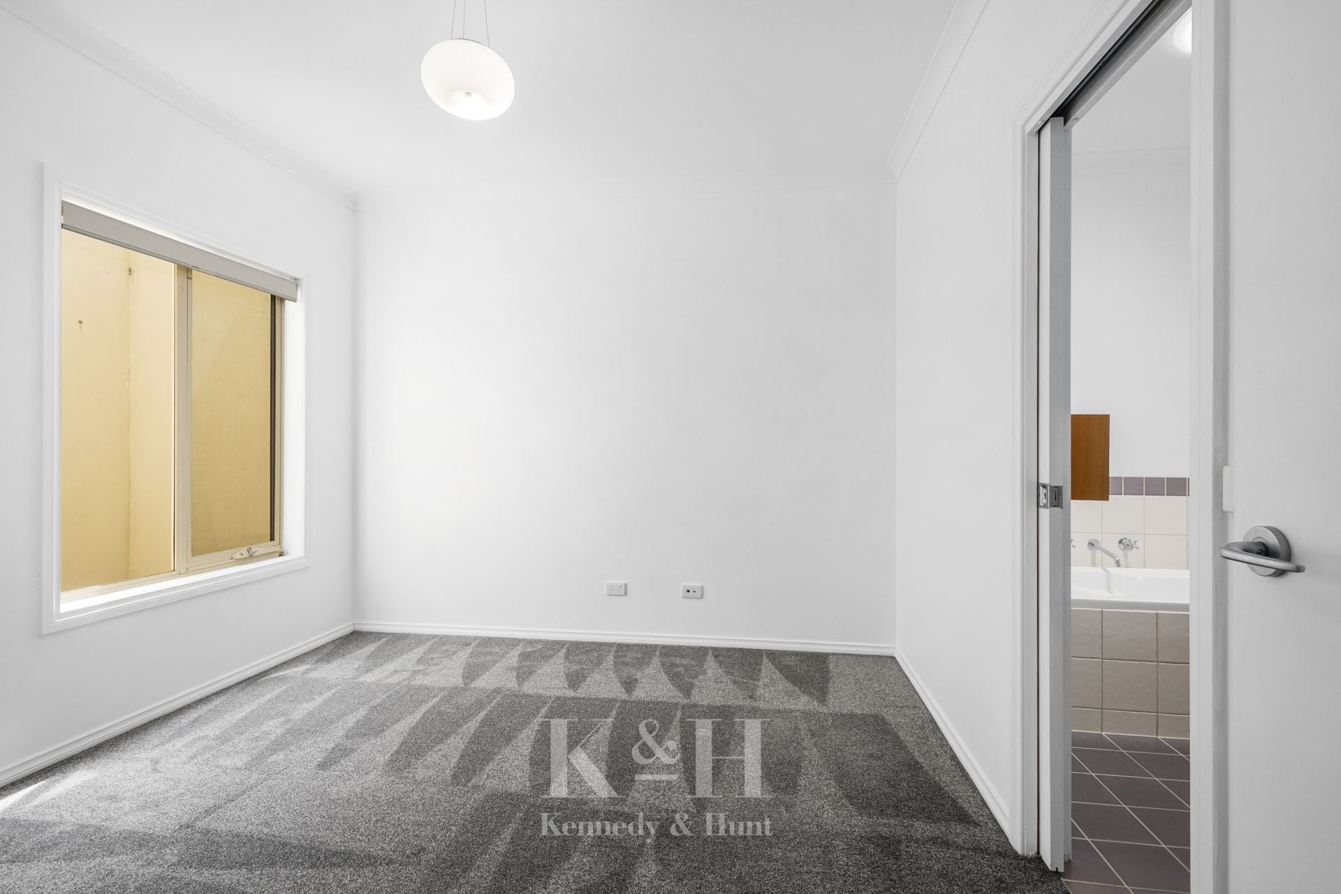 The master bedroom, located at the front of the home, features a built-in robe and direct access to the shared main bathroom, while the second bedroom is positioned on the opposite side for added privacy.