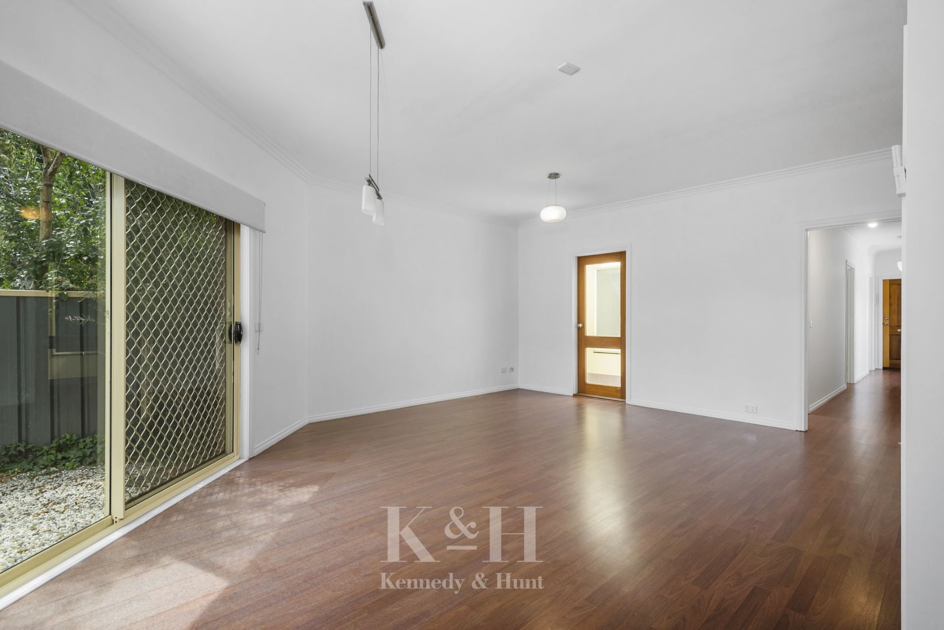 A welcoming hallway leads you into a bright, open-plan living and dining area, seamlessly connected to a well-appointed kitchen with ample storage. The space extends outdoors to a private, low-maintenance courtyard – ready for you to make your own.