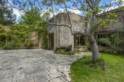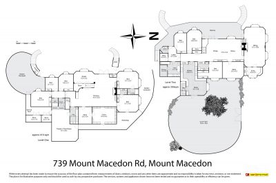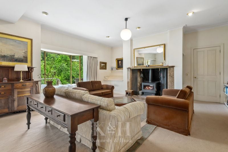 The 760m2 approx sandstone-coloured reinforced concrete residence is grand in scale. The main entry vestibule leads to a series of large, well-proportioned living spaces which include the library, sitting rooms, 3 large bedrooms, 2 bathrooms, and guest toilet. The kitchen is a gourmet chef's delight with extensive food preparation workbenches, premium appliances, storage cabinetry, large pantry, and a meals area. The downstairs is equally impressive with 5 further bedrooms (2 with ensuite bathrooms), bathroom, a powder room, laundry, storage rooms, home theatre, and a huge cellar. There are 2 walled garden courtyards – perfect for alfresco dining or entertainment. The house is serviced by split systems, 2 open fire places, a wood heater, and hydronic heating. It enjoys views of Mount Macedon from the wide balcony and rooftop.